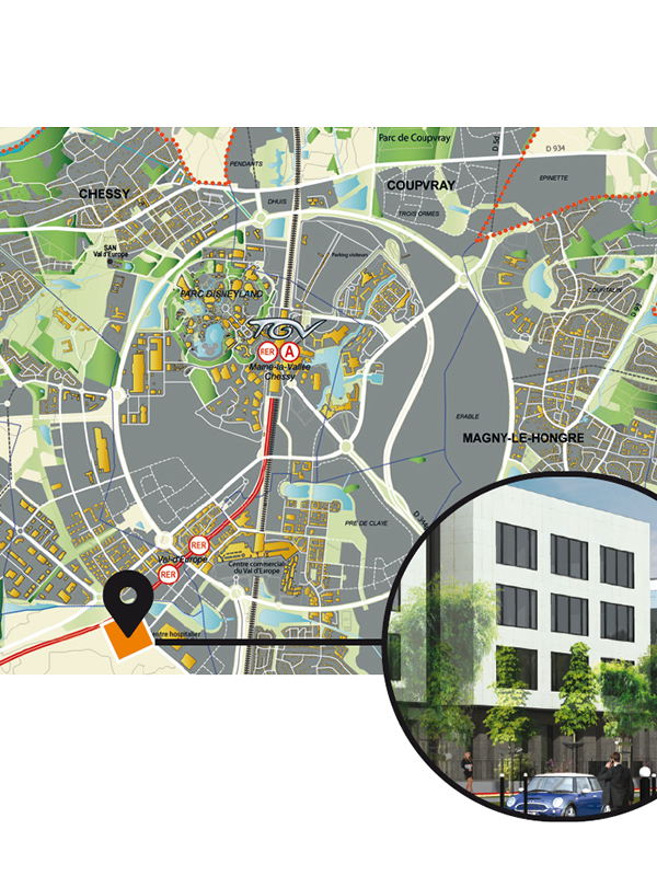Désigné pôle d'excellence dans le domaine de la ville durable, Marne-la-Vallée attache une importance toute particulière à la qualité de vie et au bien-être de ses habitants. A moins de 5 km du parc Disneyland Paris, le Centre commercial Val d'Europe et ses boutiques accueillent plus de 15 millions de visiteurs par an.