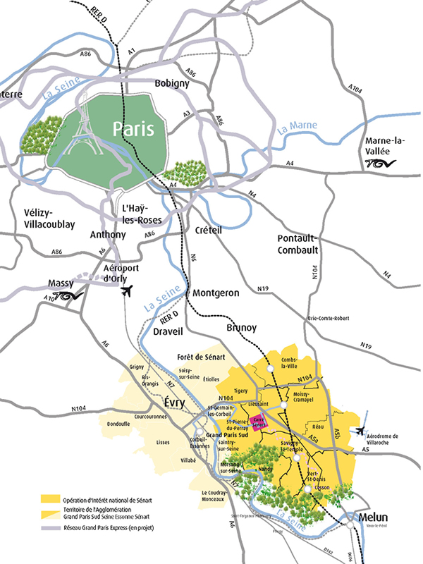 La ville nouvelle de Sénart est une ville en pleine expansion et ambitionne d'être un lieu de vie animé et bien équipé où chacun pourra bénéficier d'un cadre de vie préservé et valorisé. Le Carré, centre ville de Sénart, est un espace novateur aménagé dans un écrin paysager situé en appui sur l'Allée royale. C'est un véritable carré de 1,4 km de côté, Irrigué de canaux et bordé de tilleuls. Il accueille bureaux, commerces et espaces de loisirs.